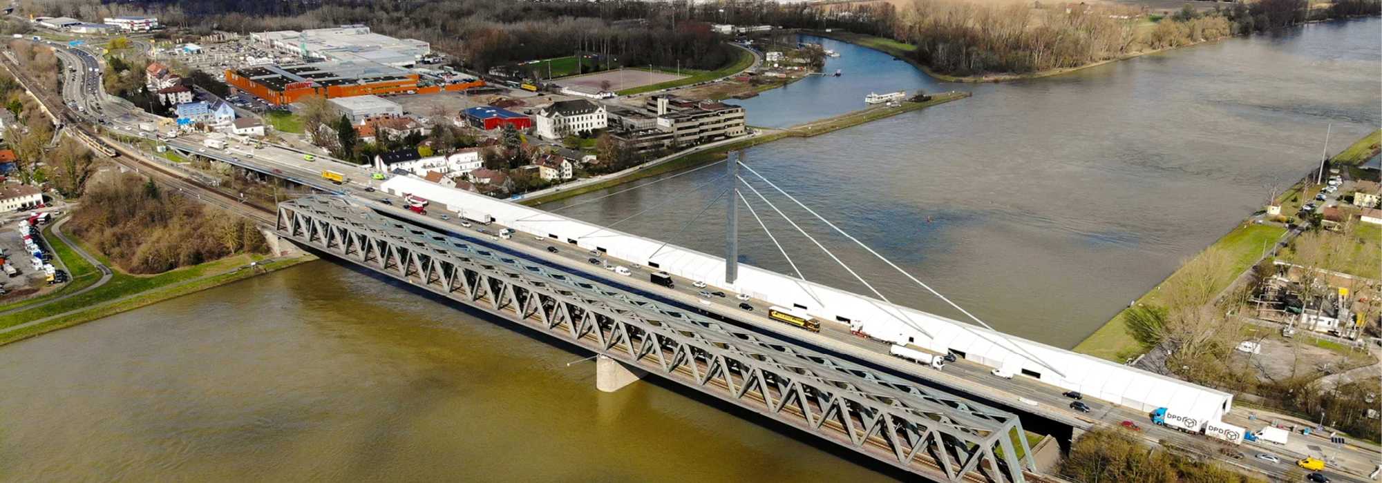 Tussen Bazel en Breisach am Rhein is de rivier niet bevaarbaar, maar ten westen van de Rijn, op Frans grondgebied, is het Grand Canal d'Alsace (de “nieuwe Rijn”) parallel aan de Rijn (de “oude Rijn”) gegraven. Daartussen ligt een eiland dat ruim 50 km lang is.