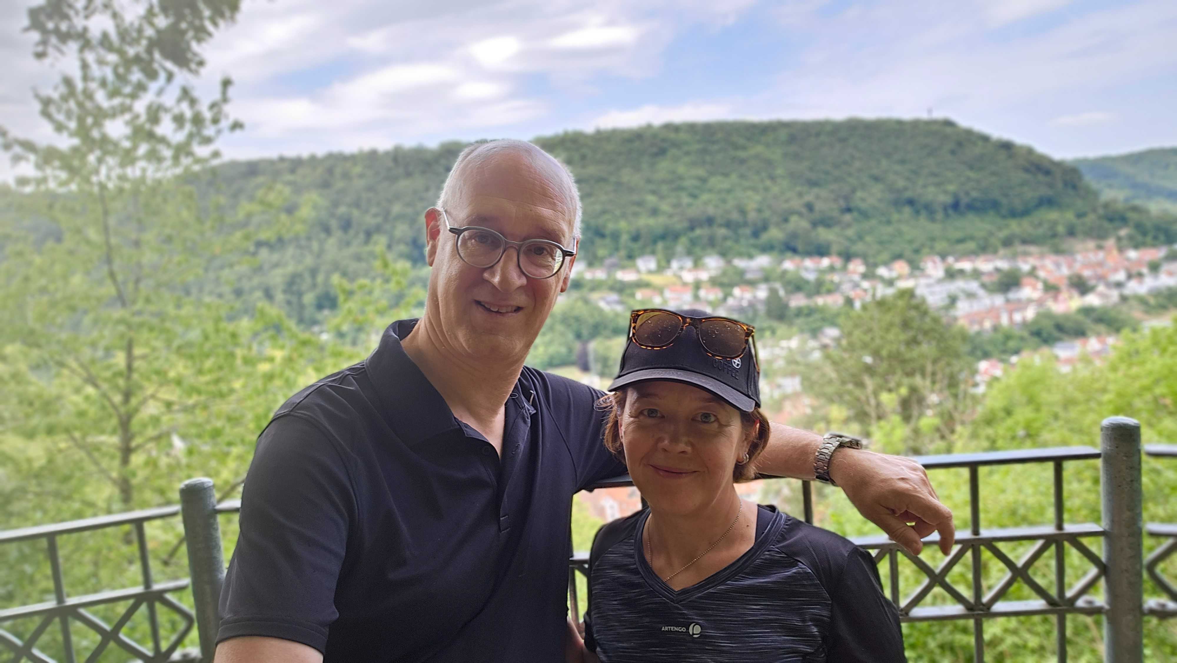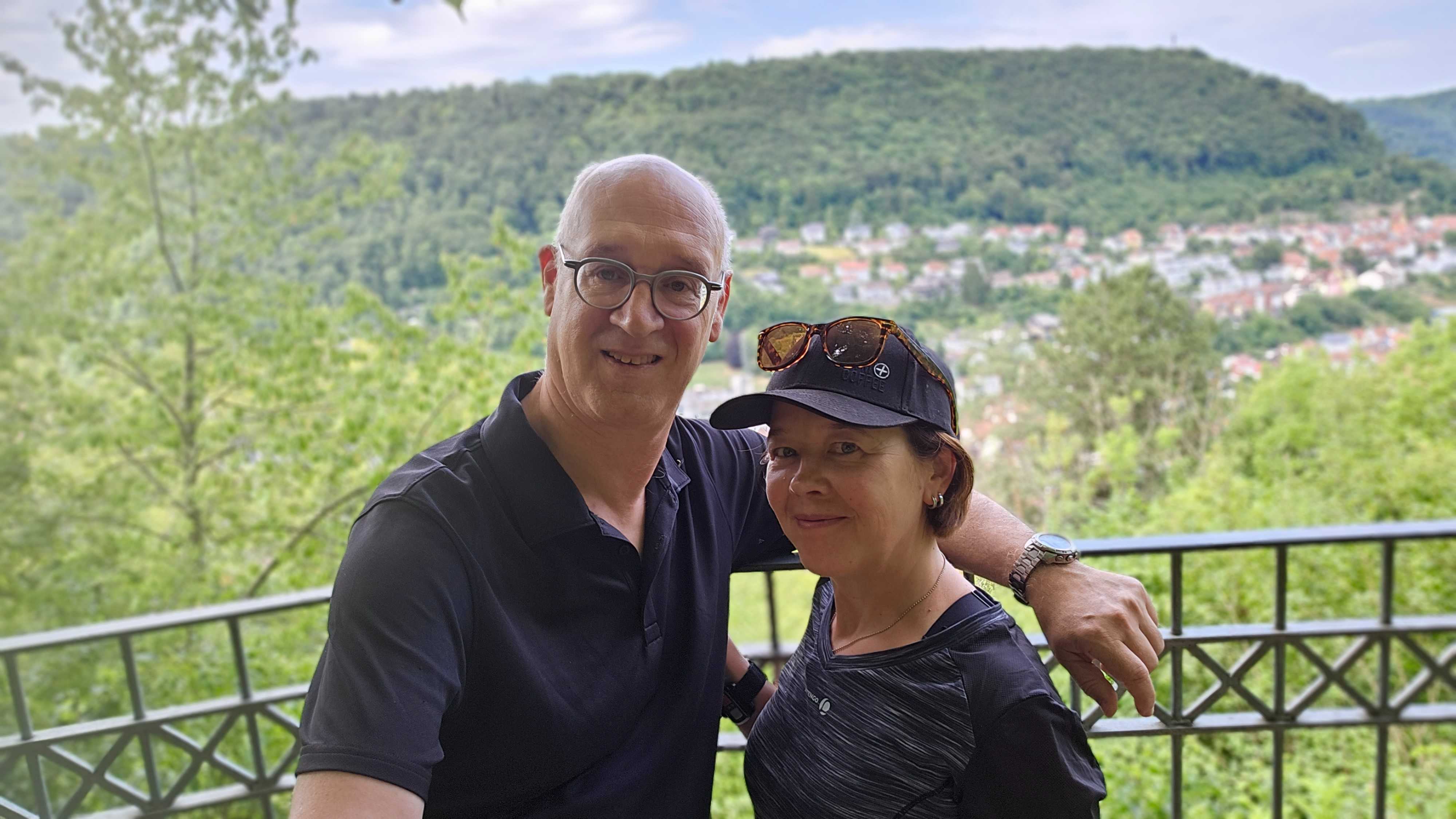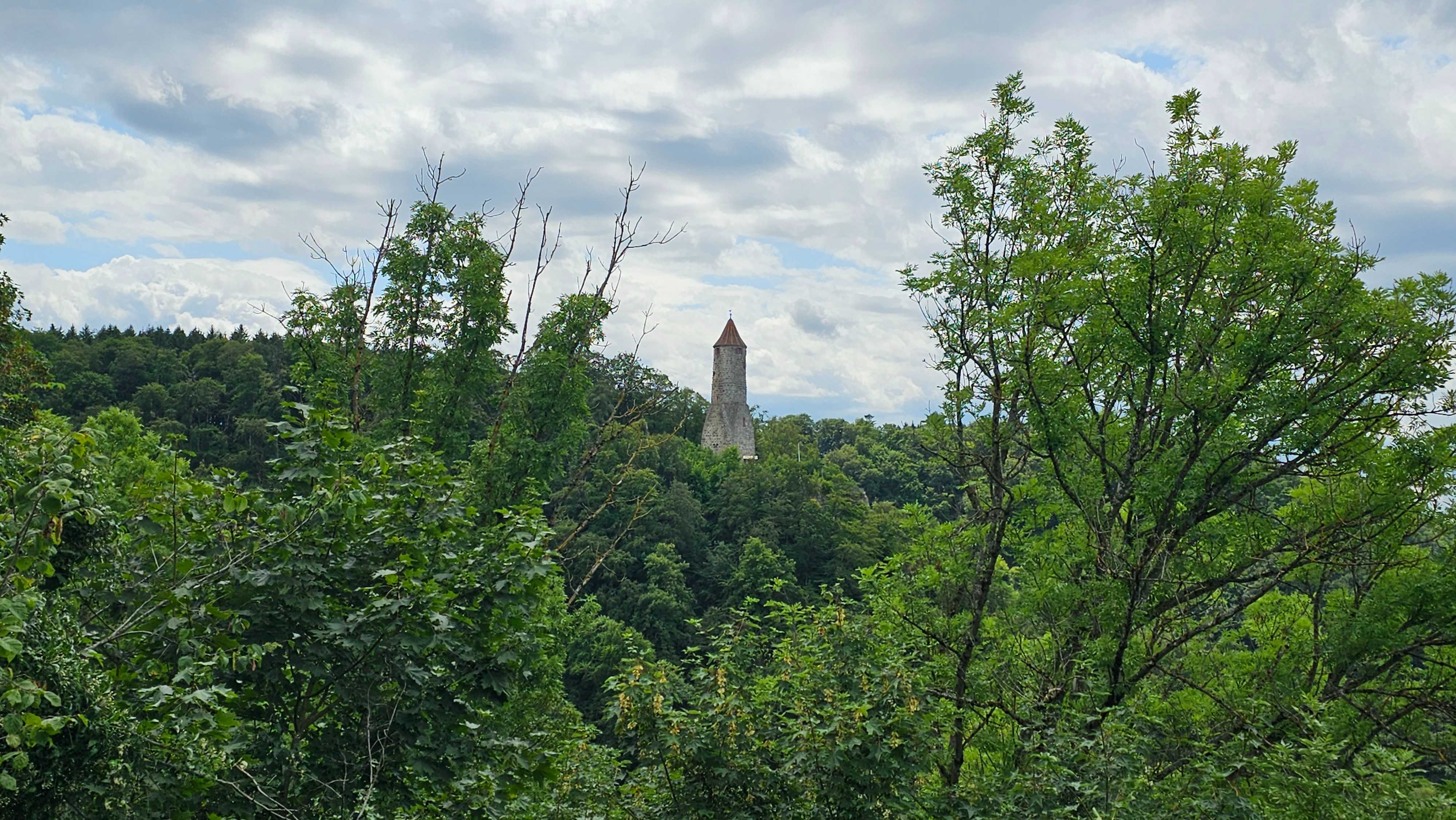 De start in Geislingen an der Steige was zeer zwaar. In de eerste kilometer moesten weten een stijging van 120 meter overbruggen. Maar we werden beloond met een adembenemend uitzicht over het dal en de stad vanuit de ruïnes van het kasteel en de Odenturm.