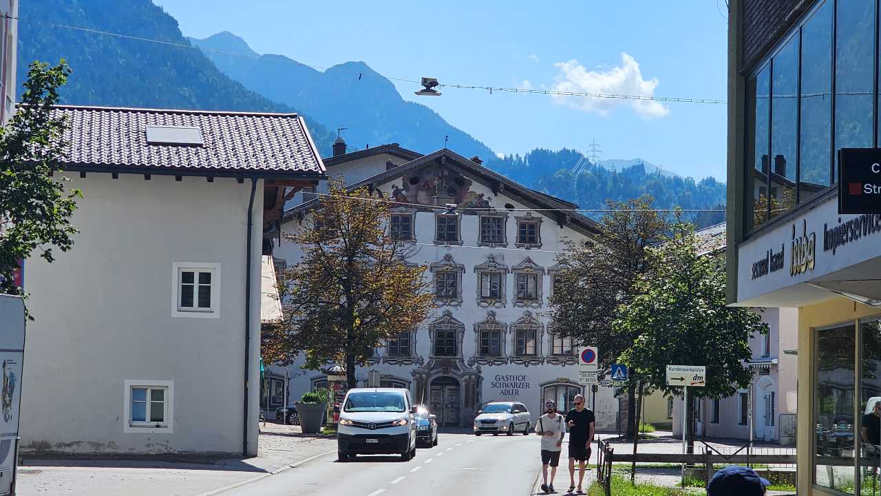 Daarna zetten we onze weg verder richting Bichlbach. Langs onze weg passeren we een herdenkingssteen voor de wandelroute "Via Claudia Augusta". Deze route werd door keizer Claudius ontworpen en zal ons begeleiden door de Alpen.