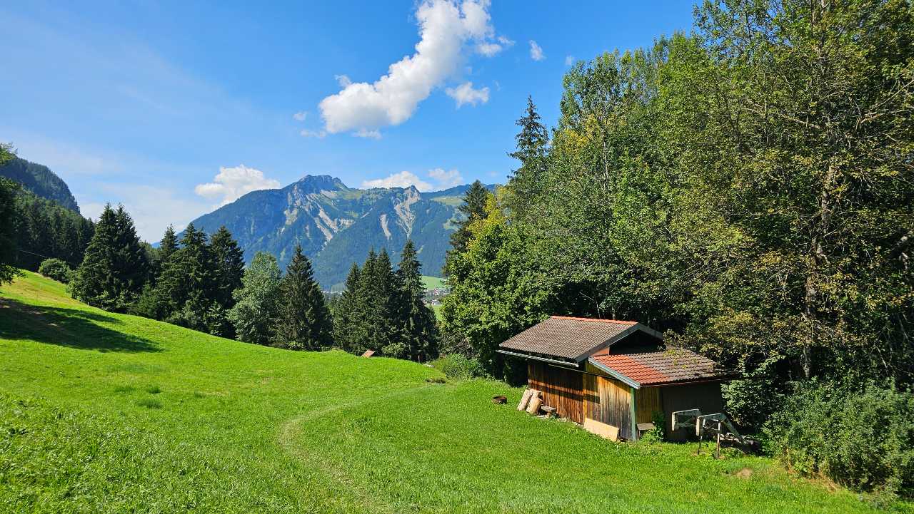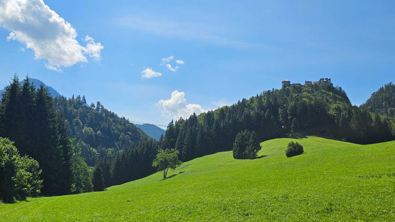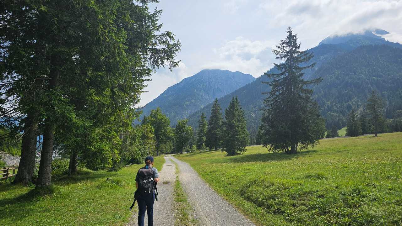We vertrekken dus onder een stralende zon vanaf het station van de stad Reutte. Na het doorlopen van het stadscentrum begint onze eerste klim richting top van de berg. Meteen is ons ook duidelijk dat je in de bergen best op de bekende wandelpaden blijft en zelf geen kleine wegjes probeert te volgen want sommige staan wel op de kaart maar zijn niet te vinden waardoor we een aangepaste route volgen die ons waarschijnlijk een kleine kilometer langer aan het wandelen zet.