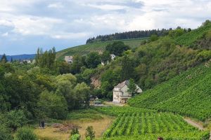 De etappe van Trier naar Waldrach leidt ons de stad uit doorheen de wijnvelden...