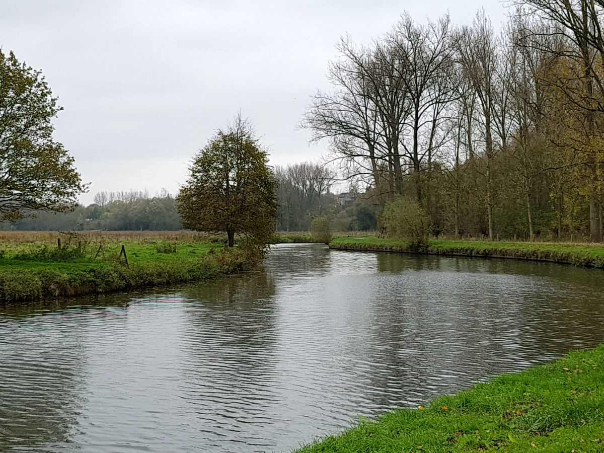 Een kilometer verder wandelen we onder de spoorweg en door het dorpscentrum van Erembodgem om daarna de Dender over te steken. Deze stroom zal ons nu voor een geruime tijd gezelschap houden. Deze verlaten we pas wanneer we het dorp Teralfene naderen.