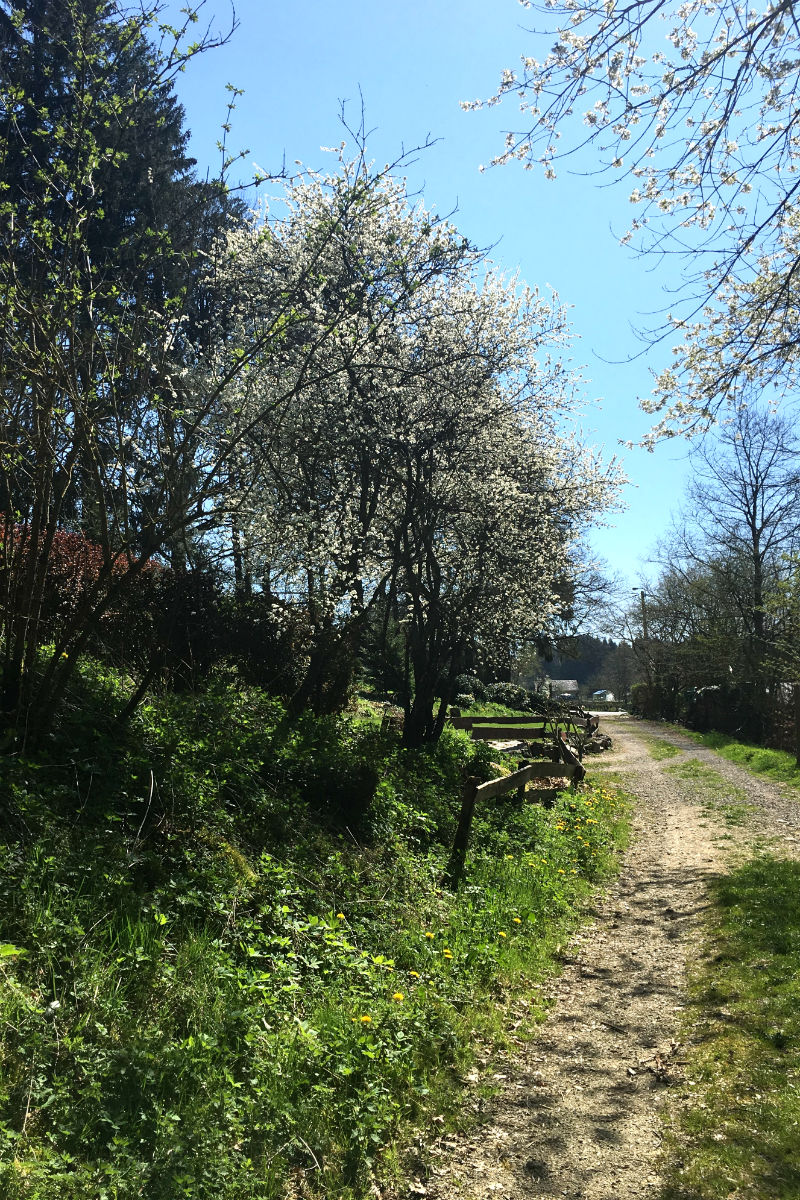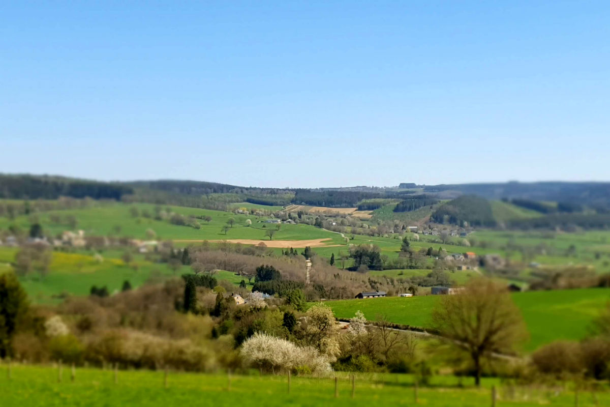 De streek die we daarna doorkruisen biedt veel afwisseling. We wandelen heuvel op, heuvel af door bossen en velden, langs beekjes en dorpen naar de provincie Luxemburg en naar onze eindbestemming. Het weer is perfect en het mooie uitzicht wordt gekleurd door het ontluiken van de natuur wat het wandelen zeer aangenaam maakt. We konden de lente als het ware "proeven"!!