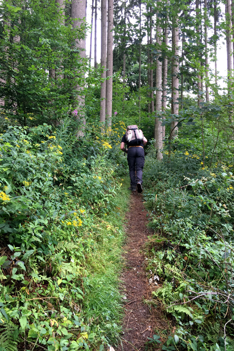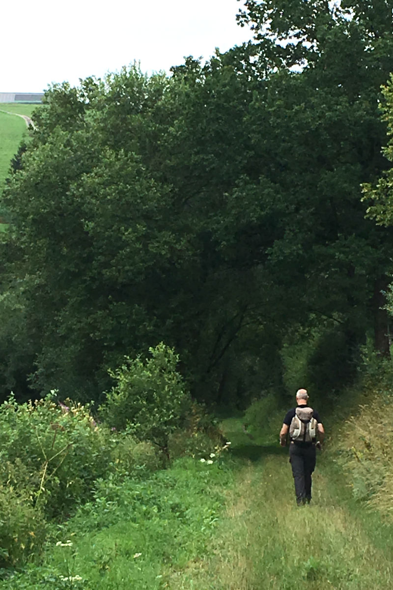 Ook deze etappe blijkt zeer mooi te zijn: eerst een stuk door bosrijk gebied, gevolgd door een heuvelachtig landschap tussen weiden en velden. Enkele heuvels hadden zelfs een serieus steile helling die we nog lang zullen herinneren!!