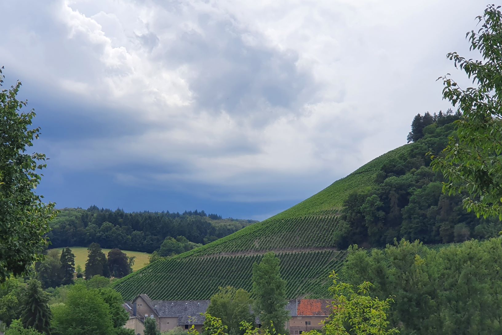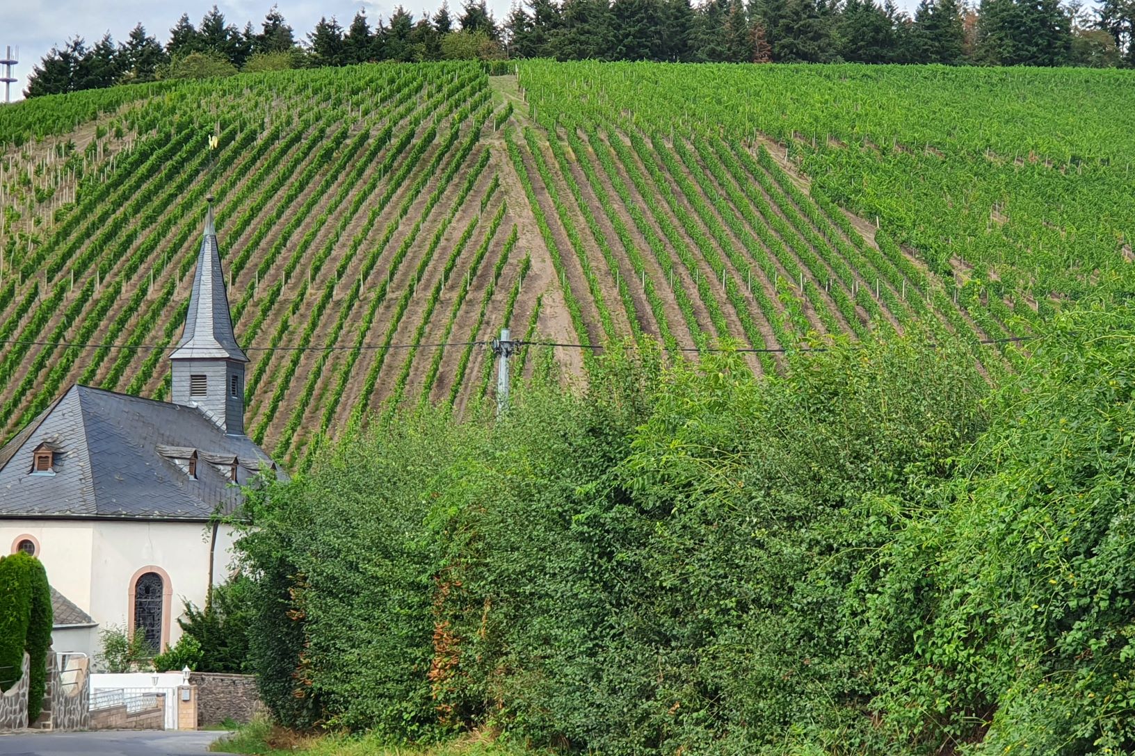De etappe van Trier naar Waldrach leidt ons de stad uit doorheen de wijnvelden van de Moesel.