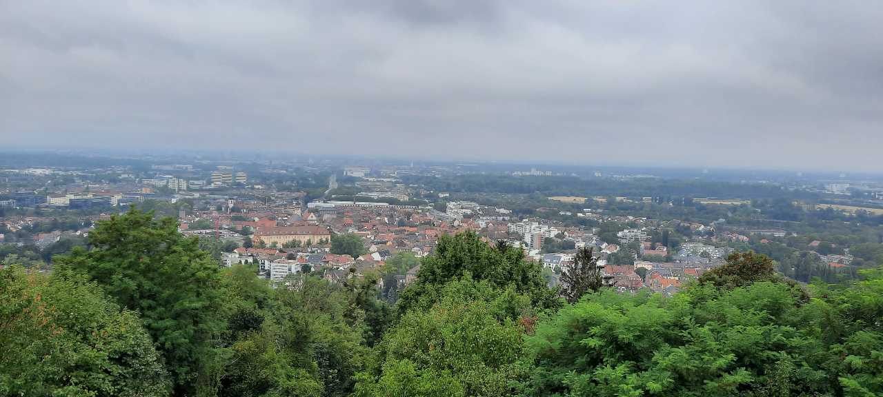Bij de start van deze etappe is het meteen prijs. Naar een korte inloop van ongeveer 1 km staat de Turmberg van Durlach op het programma. Het beklimmen van de vele treden wordt meteen beloond door een adembenemend uitzicht over de stad Karlsruhe.