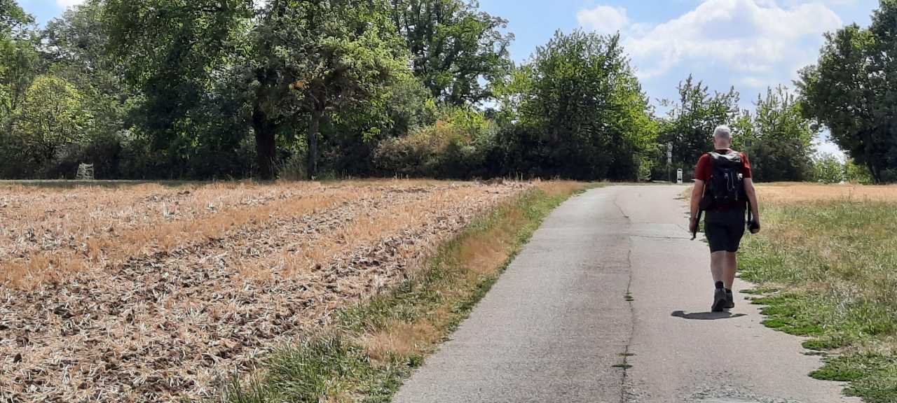 De zon is van de partij wanneer we vertrekken vanuit de bushalte in Wimsheim. Het belooft een prachtige warme dag te worden.