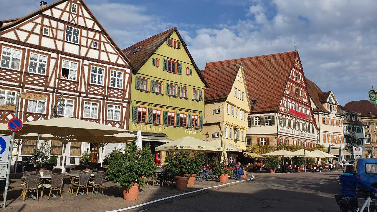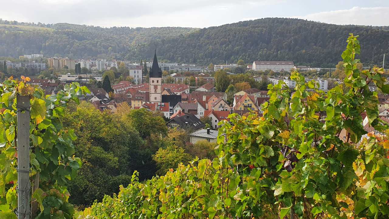 Vandaag nemen we afscheid van Stuttgart en bereiken we er de rivier Neckar. Deze rivier zal de ganse dag onze metgezel zijn. We wandelen nl op de heuvelflanken tussen de wijngaarden tot we de stad Esslingen am Neckar bereiken. Deze stad blijkt zeer authentiek en gezellig te zijn.