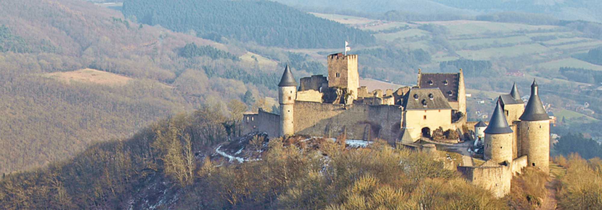 De burcht lag op een alleen vanuit het noordwesten toegankelijke leisteenrots, 150 m boven de rechteroever van de Sûre en 360 tot 380 m boven de zeespiegel. De ruïnes van deze bouwconstructie, die ongeveer 151 m lang en 53 m breed was, een oppervlakte had van 12000 m², en omgeven was met een sterke ringmuur met afgesloten tussenruimtes en elf torens, zijn tegenwoordig nog een bewijs voor de versterking van deze burcht. Het kasteel ligt op een strategisch punt in het noorden van Luxemburg.