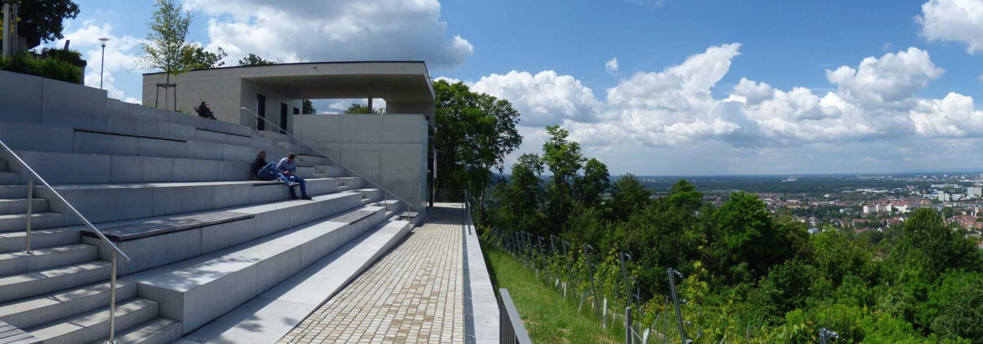 Van noordwest over west naar zuid op de berg ligt Durlach en in noordoostelijke richting met Grötzingen een ander district van Karlsruhe.