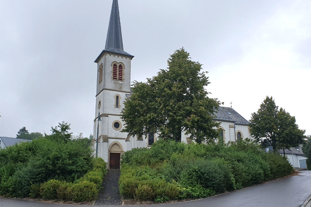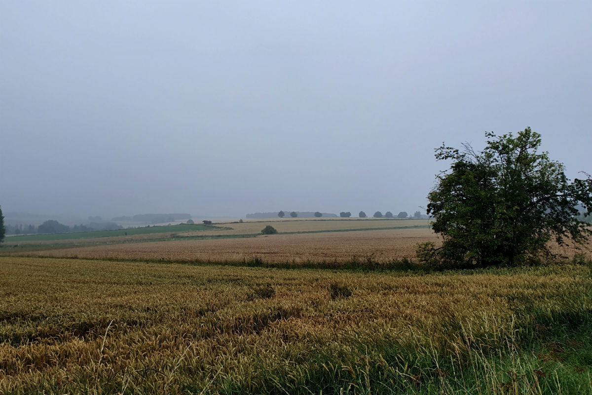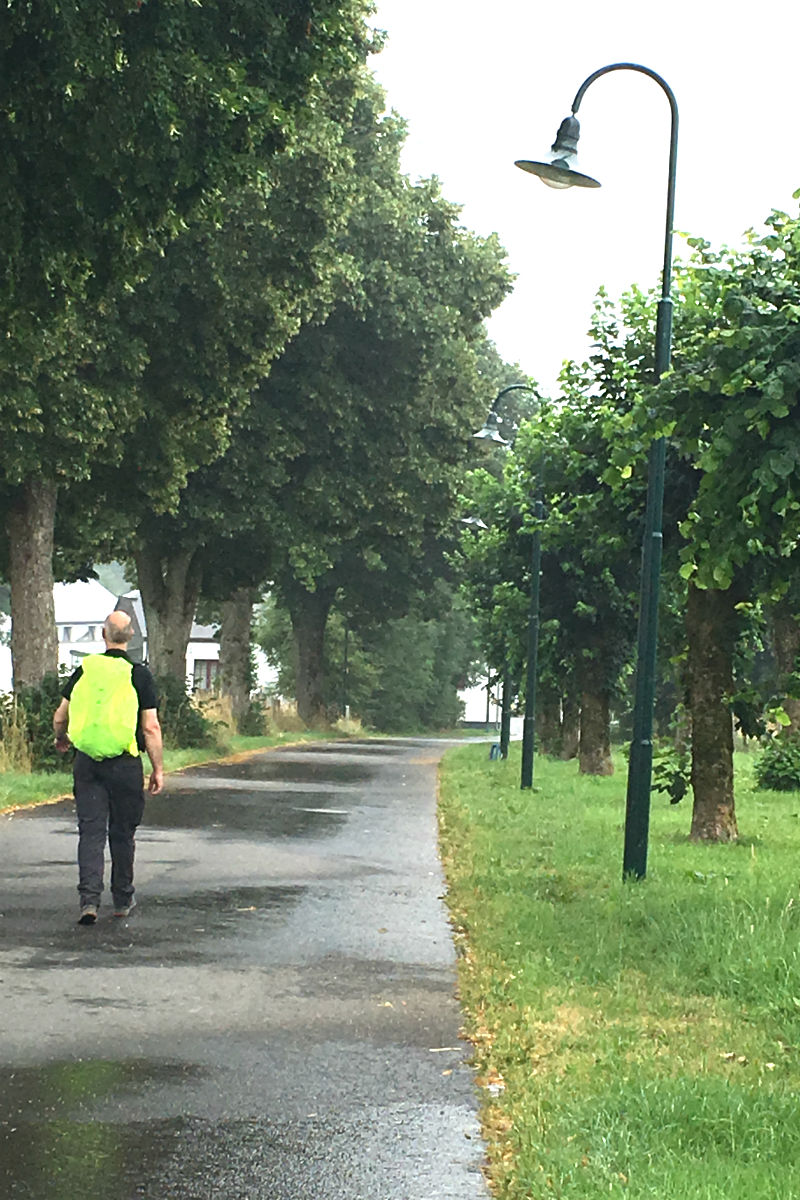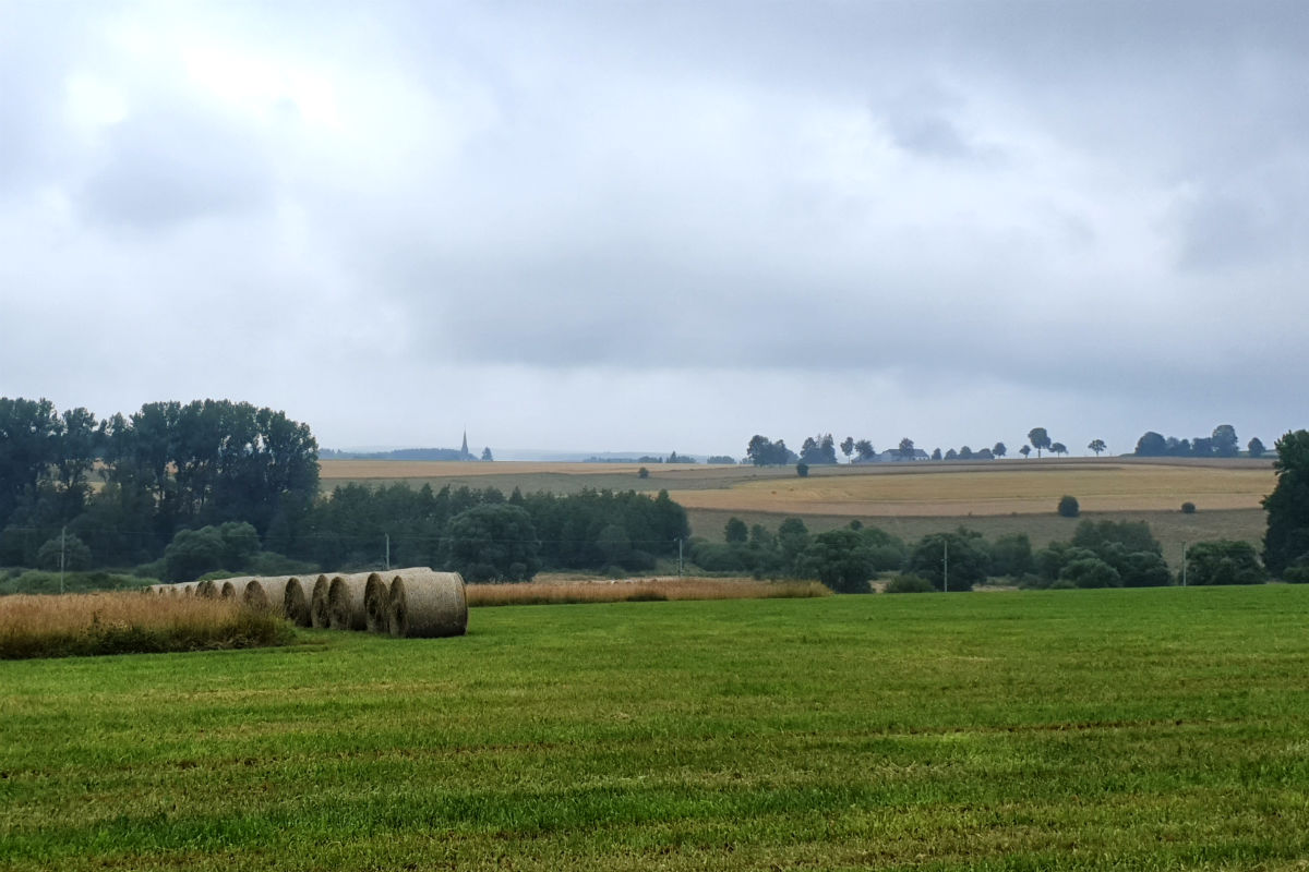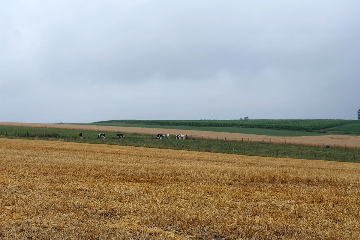 Een tijdje zullen wij nog flirten met deze grens want deze scheidingslijn ligt pal langs ons pad. Na een paar honderd meter verlaten wij definitief België en duiken wij de Luxemburgse heuvels en velden binnen. Het uitzichten over het landschap en dorpen is er zeer mooi. Enkel het weer valt niet echt mee want wij krijgen geregeld een regenbui over ons heen. De ene wat intenser dan de andere maar ach, de temperatuur valt mee en wij drogen dan ook rap.