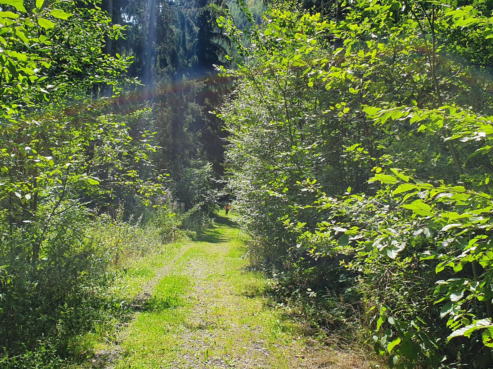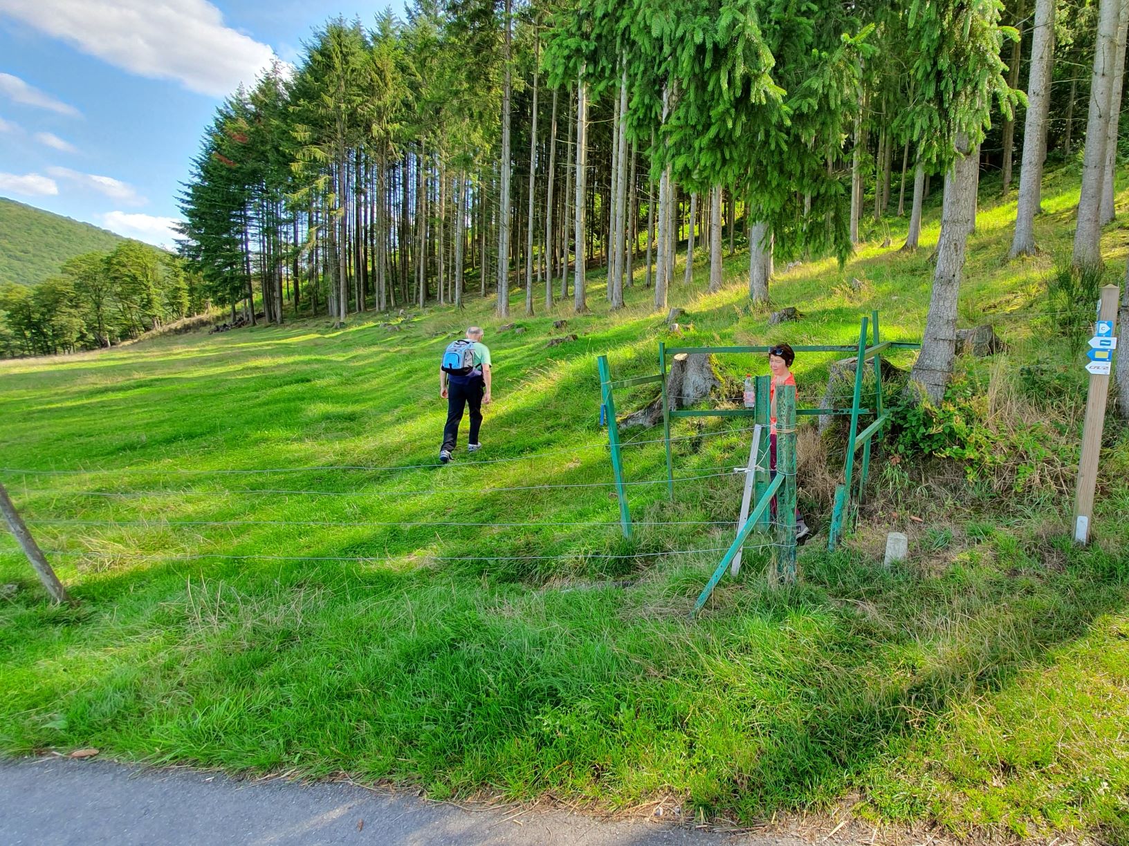 Na deze korte stop wandelen we de helling af naar het dorpje Michelau. De gekozen weg blijkt al een aantal jaren niet meer onderhouden waardoor we moeten stappen tussen hoog opgeschoten bramen en neergekomen naaldbomen. We besluiten dan maar om een paar honderd meter rechtstreeks de helling af te lopen tot we weer een herkenbaar pad bereiken.