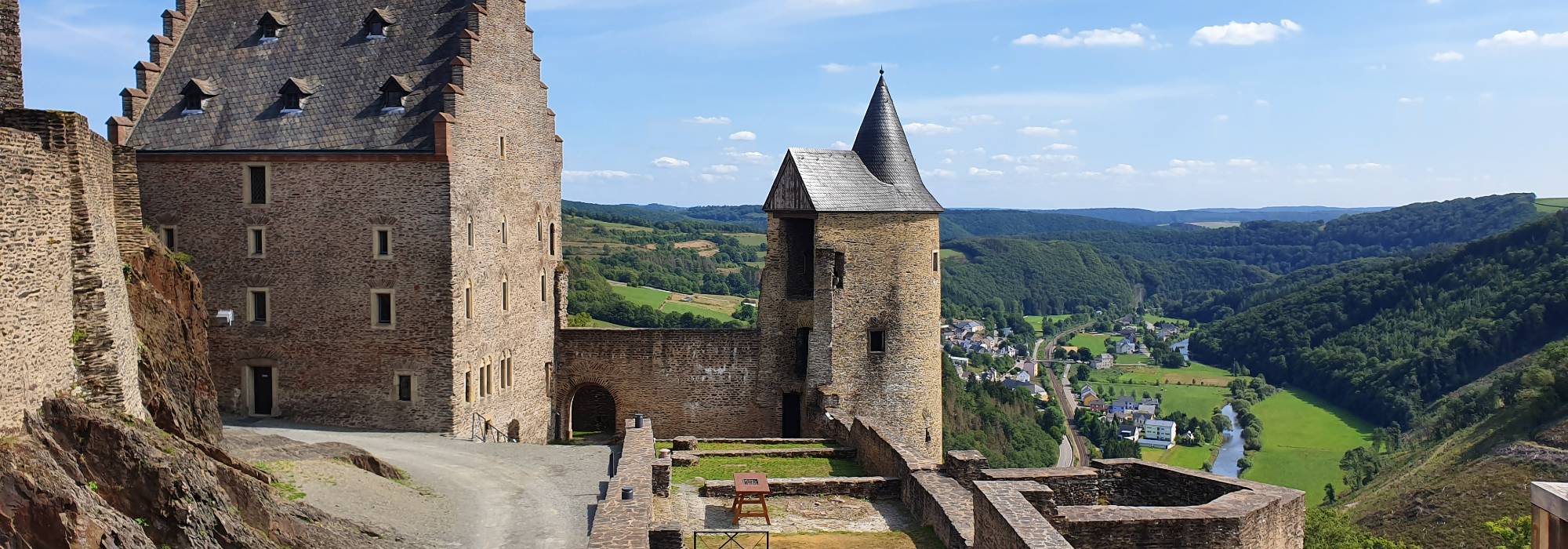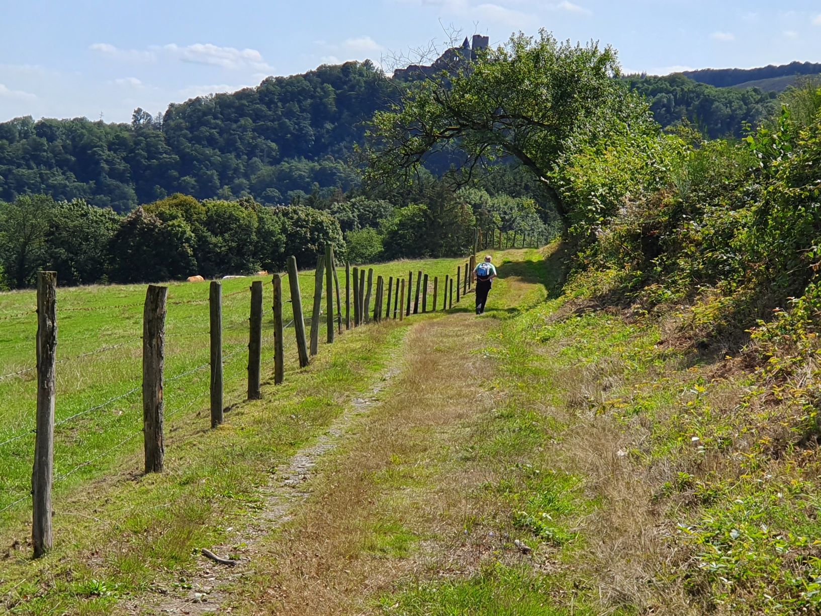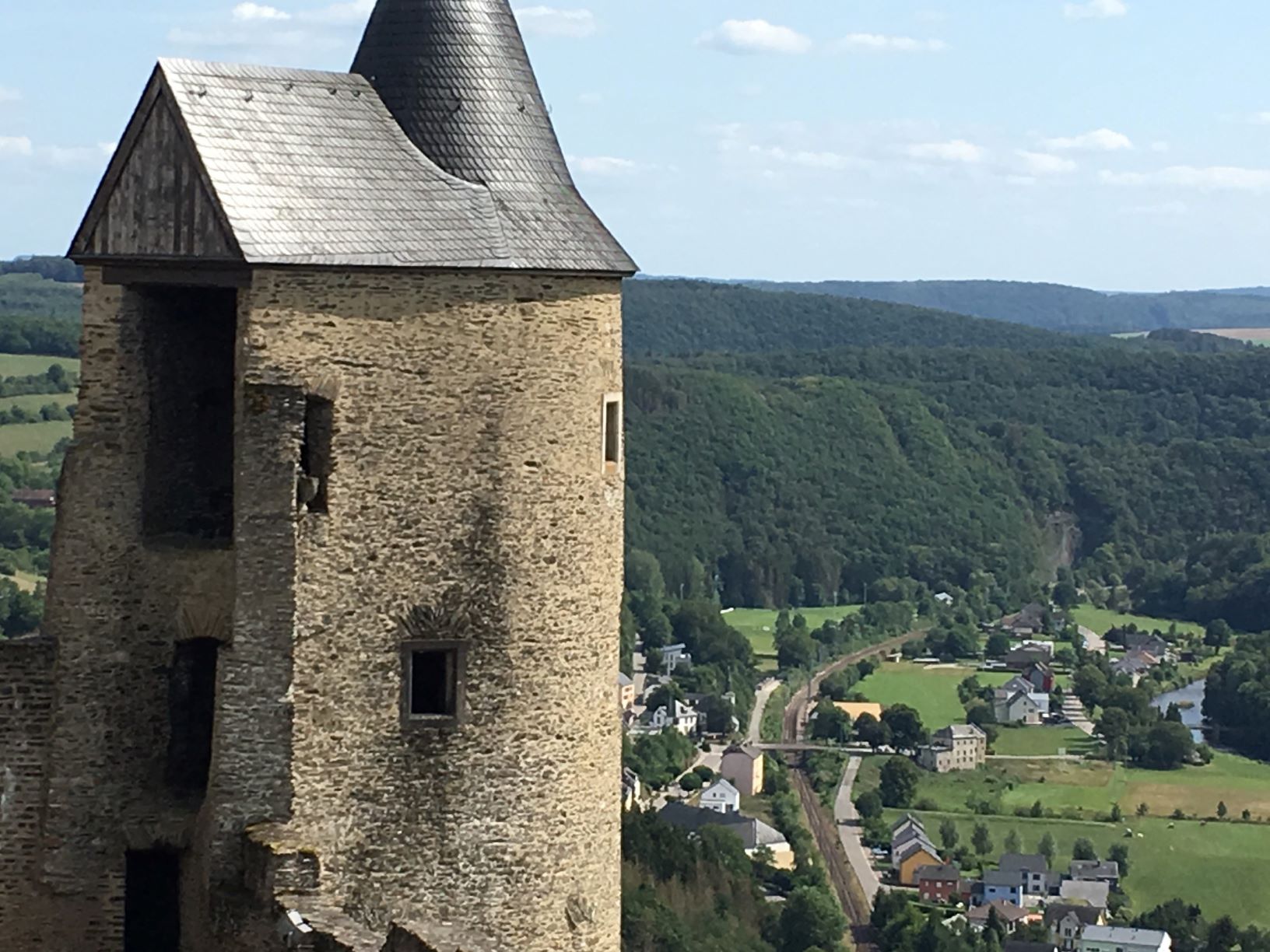 De weg is ruim 13 kilometer lang en loopt voornamelijk door het bos tot we uiteindelijk langs het kasteel van Bourscheid passeren. Deze plaats is een welkome rustplaats en geeft een adembenemend zicht over de vallei en onze bestemming Michelau.