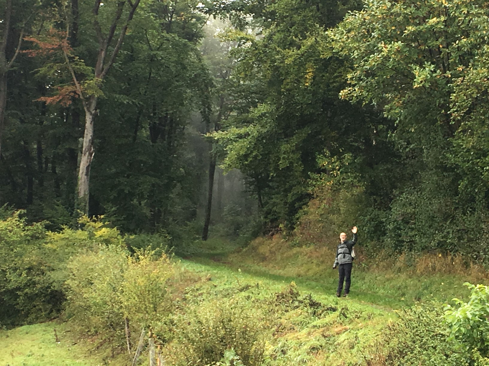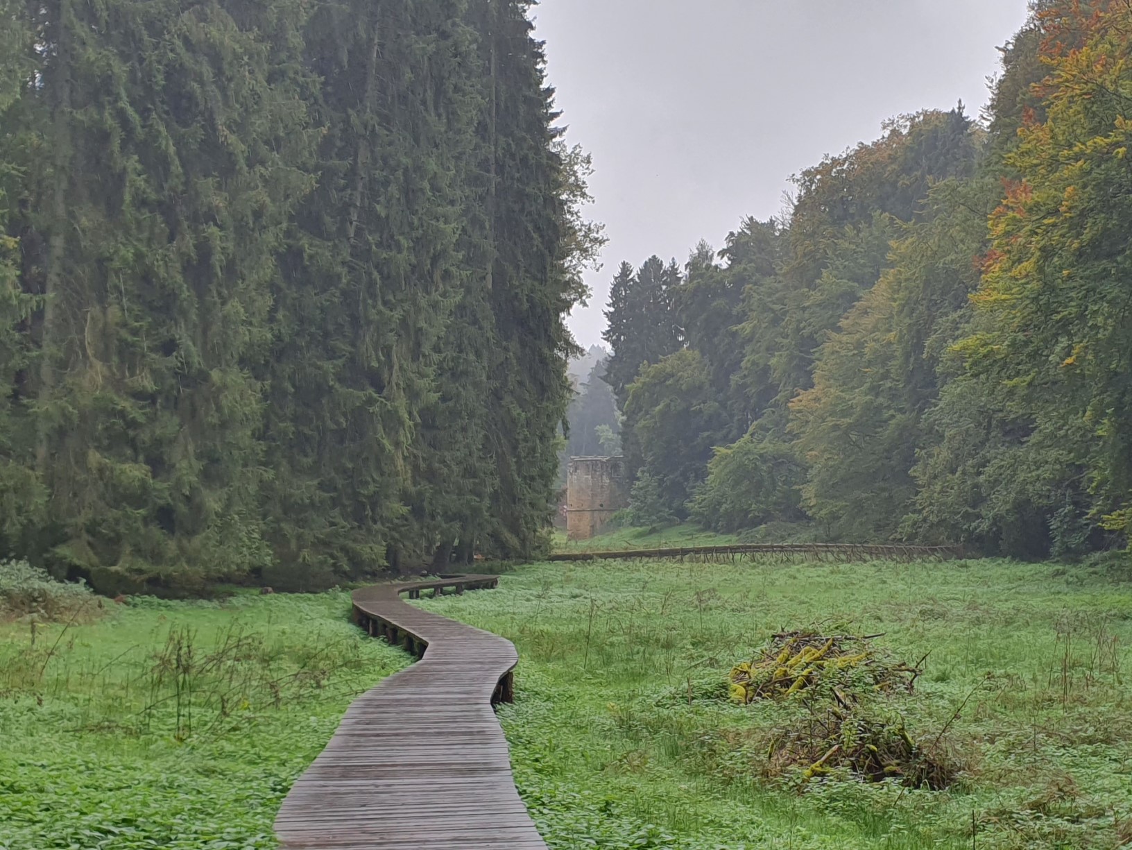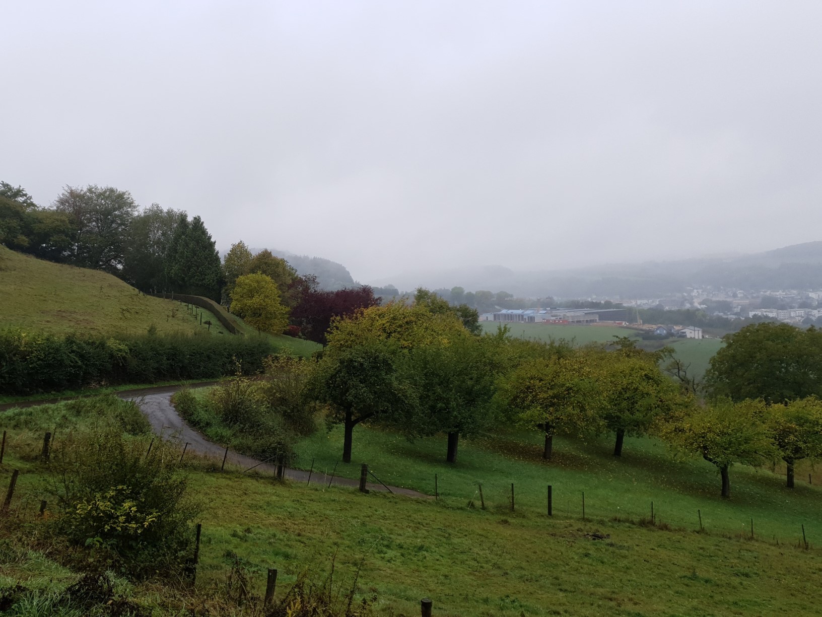Eens het dorpscentrum voorbij begint onze eerste klim de heuvels op naar de lourdes-grot van Gilsdorf waarna ons een zeer mooi wandelingweg opwacht langs de bergflank en door het bos.