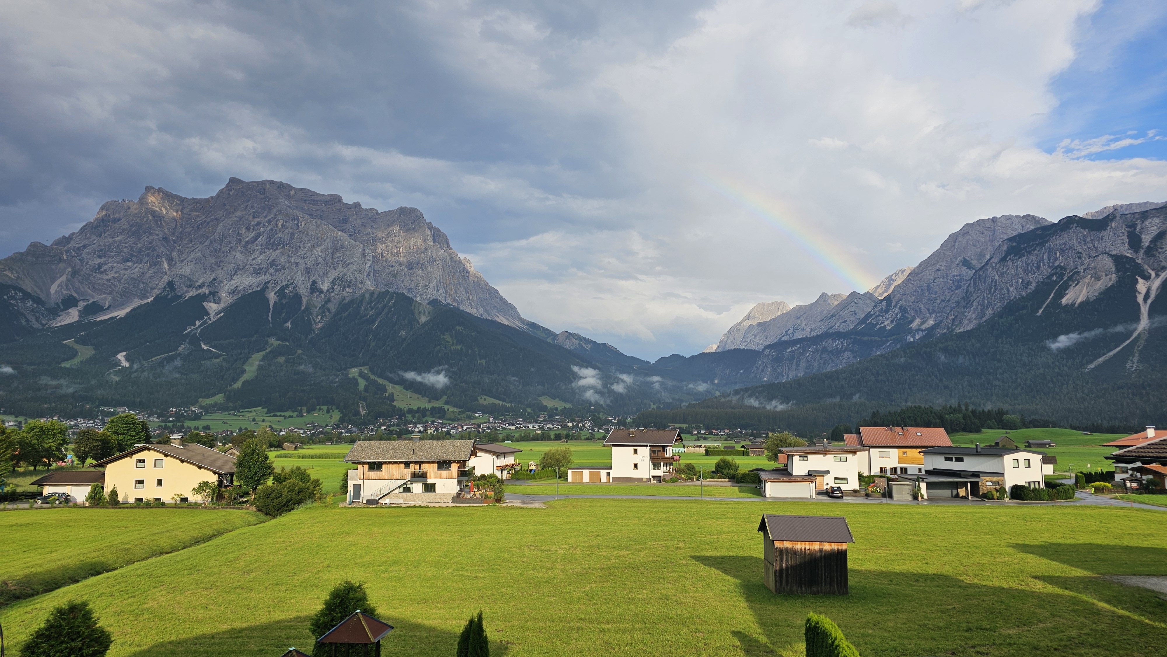 Een paar uur later, wanneer we in ons hotel te Lermoos aankomen barst een groot onweer los. De regen valt er met bakken uit de lucht.