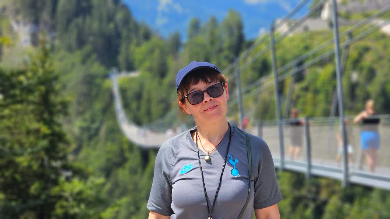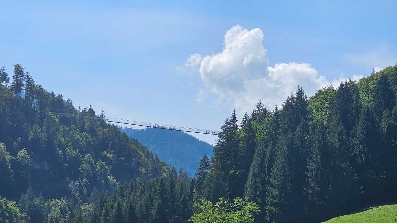 Na de eerste kilometers gewandeld te hebben komen we aan bij de de bekende hangende brug "Hikeline 179". Deze brug is ca 400 meter lang en verbindt op een hoogte van ongeveer 100 meter boven het dal te heuvels en ook twee verschillende ruïnes van burchten.