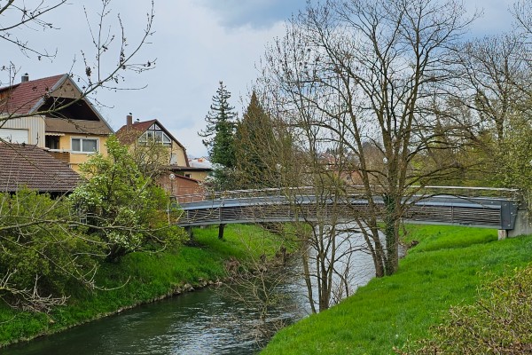 We starten onze tocht in het dorp Süssen en wandelen in het dal van de rivier...
