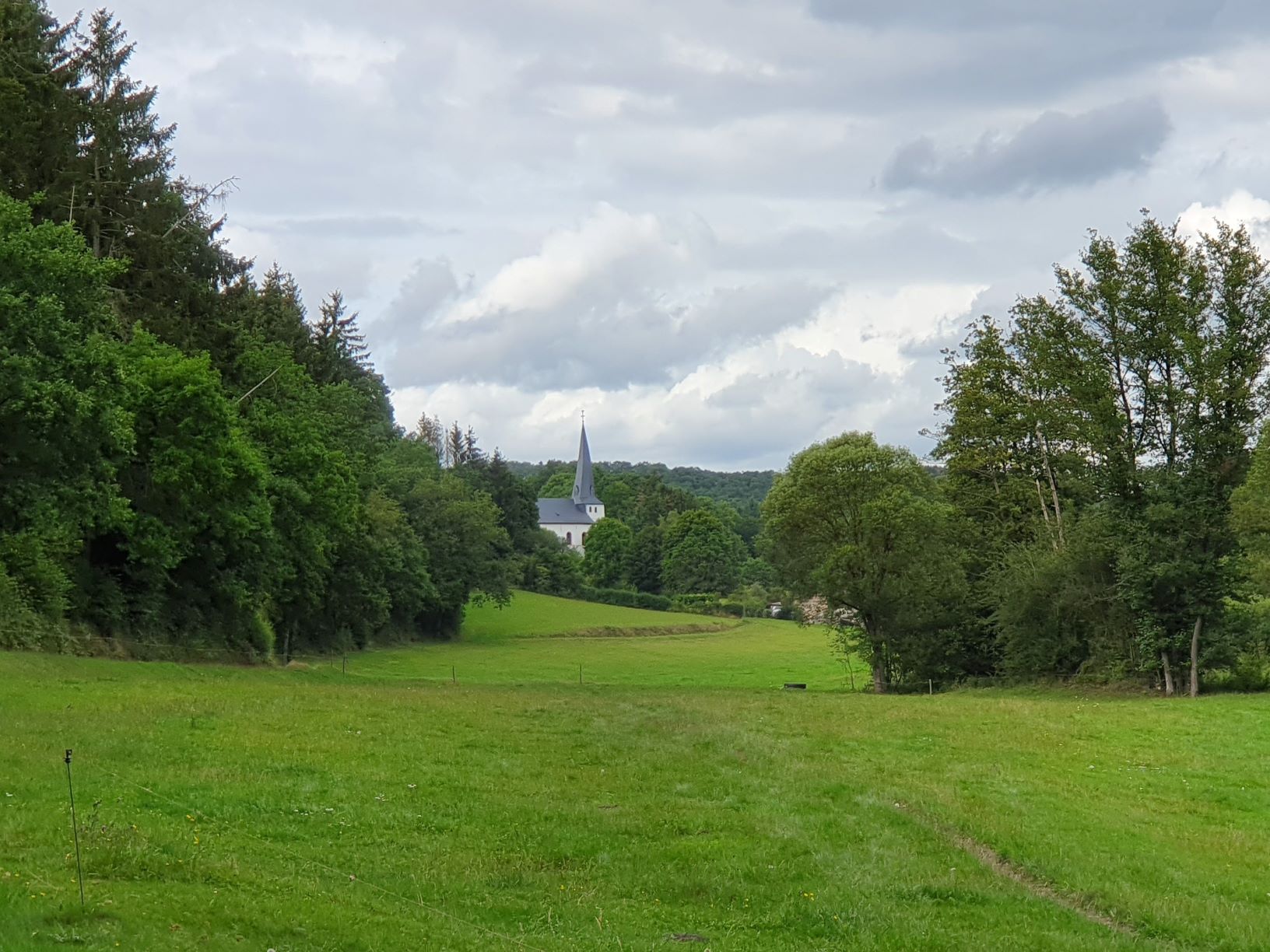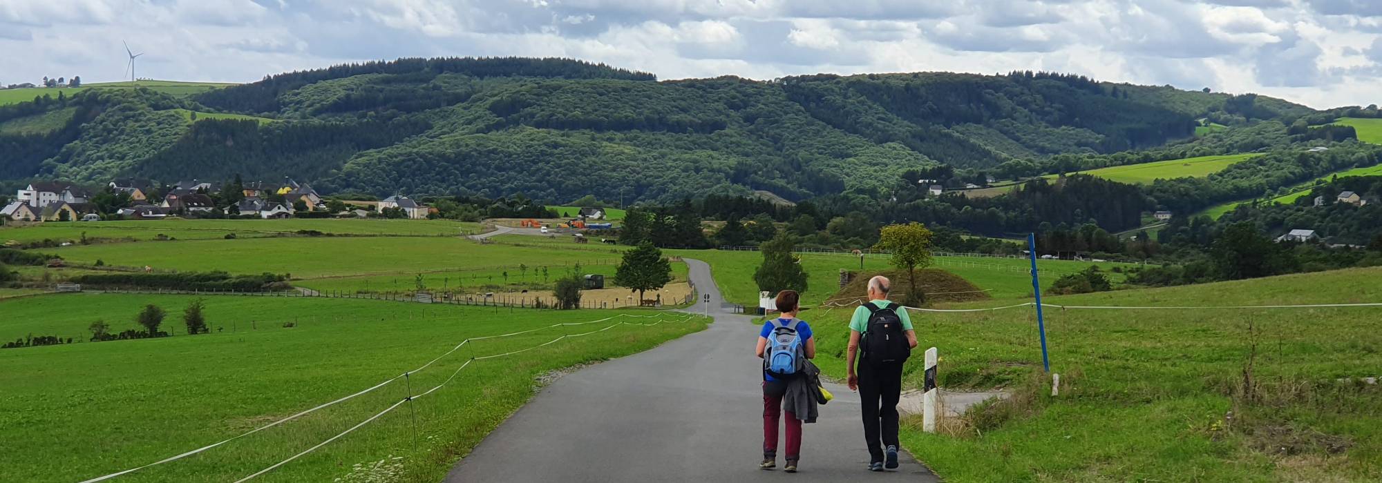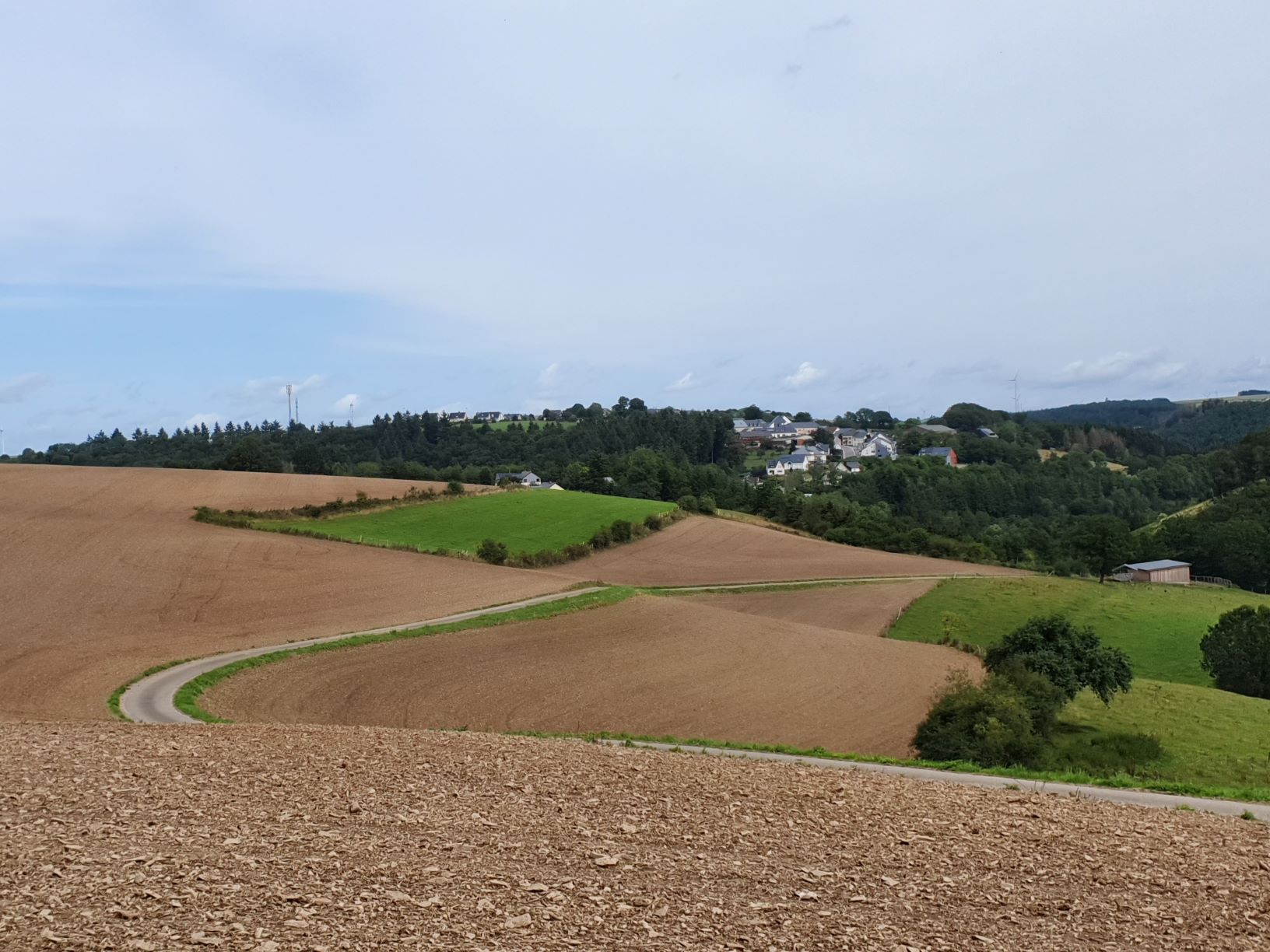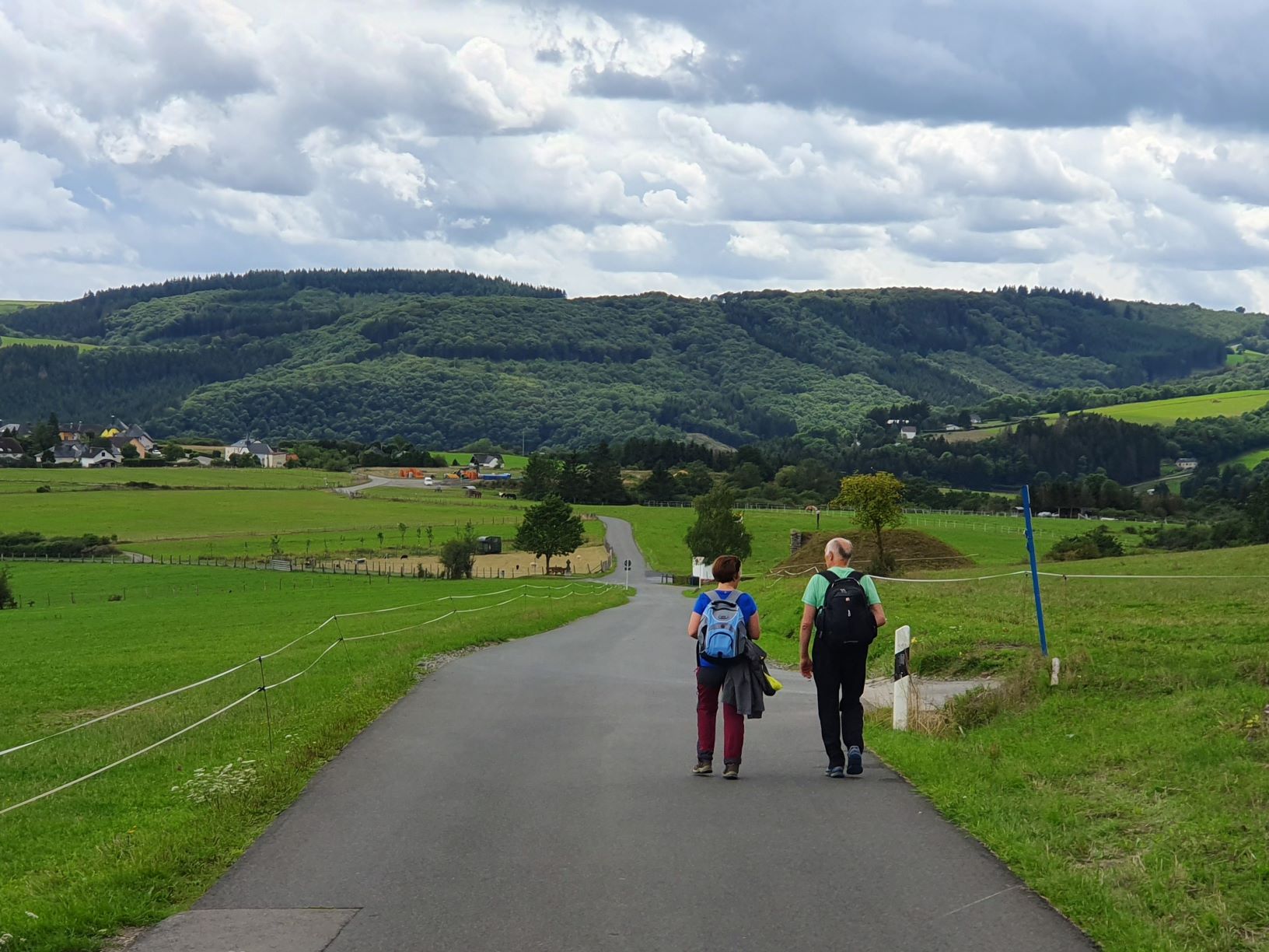 De wandeling is voorspoedig en vol afwisseling. We wandelen door berg en dal, in bossen en uitgestrekte weidelandschappen en kunnen zelfs een hert spotten. De landelijke dorpjes zijn schilderachtig.