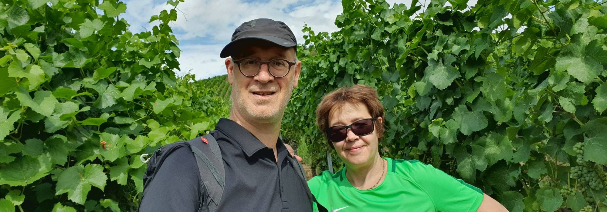 De etappe van Trier naar Waldrach leidt ons de stad uit doorheen de wijnvelden van de Moesel.