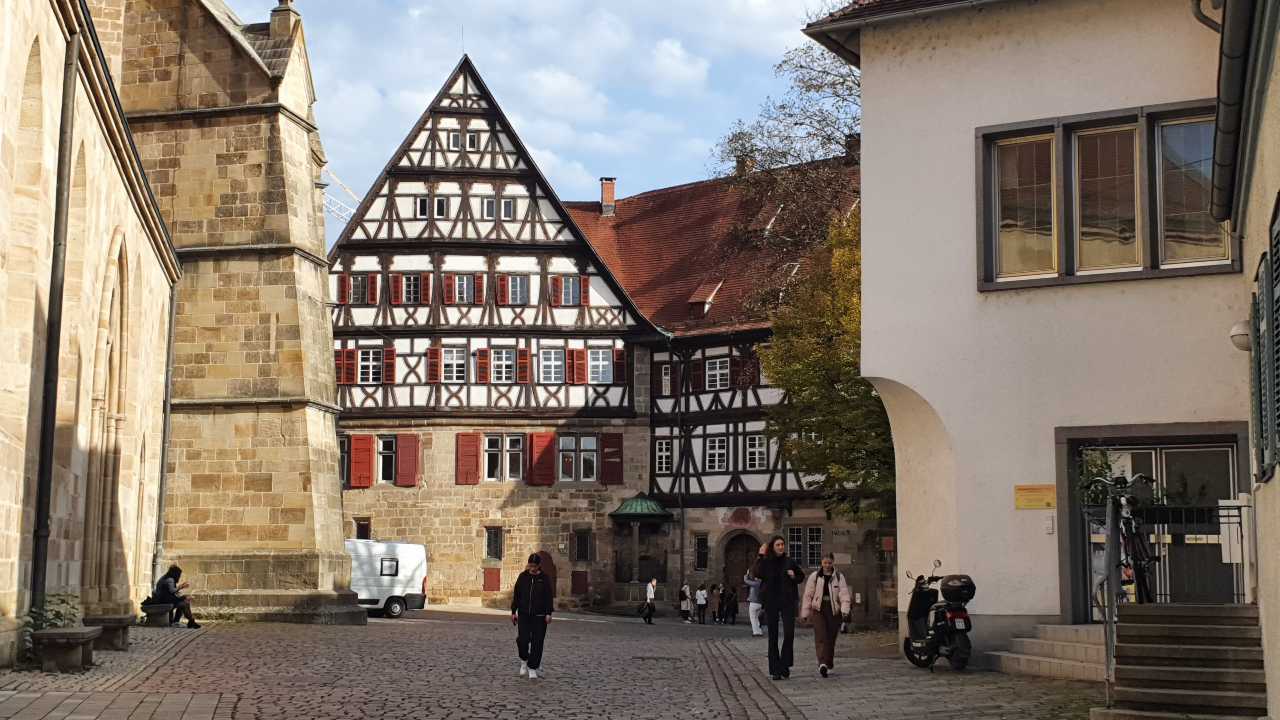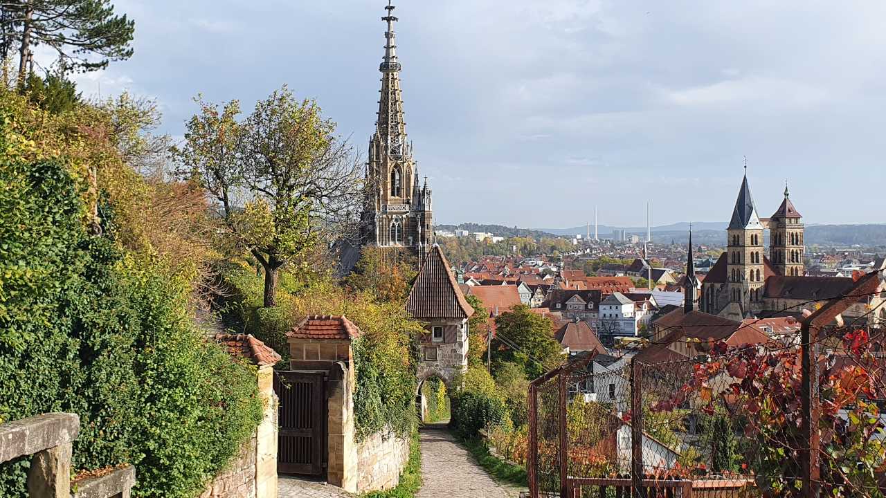 Vandaag nemen we afscheid van Stuttgart en bereiken we er de rivier Neckar. Deze rivier zal de ganse dag onze metgezel zijn. We wandelen nl op de heuvelflanken tussen de wijngaarden tot we de stad Esslingen am Neckar bereiken. Deze stad blijkt zeer authentiek en gezellig te zijn.